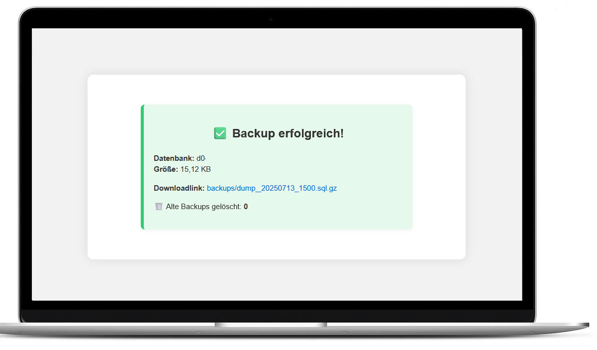 Perfekt für Webshop-Betreiber, Blogger oder Entwickler, die regelmäßig Backups benötigen – ganz ohne externe Dienste oder komplizierte Konfigurationen!